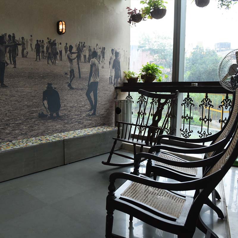 Stroll to the next section and you will find high ceilings and checkered floors inspired by the Art Decor movement. There is also a section with seating options similar to the local restaurants of Dadar. Designed to take you to the sidewalks of Shivaji Park with a tapri-like setup and rocking chairs, the smoking zone brings back elements from Dadar’s unforgettable landmarks. Lastly, adding to the finishing touch is the reading and community space decorated with a photo wall that pays homage to the people and places in and around Dadar.