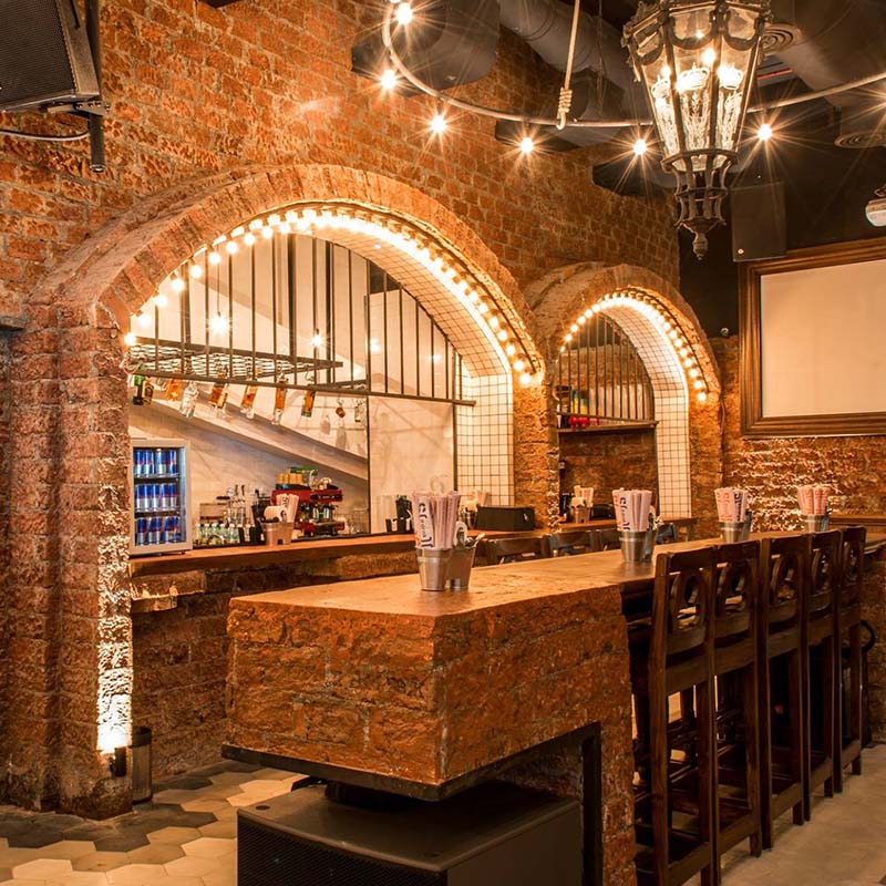 At this 2700 square feet outpost, in the heart of Goregaon’s beloved Oberoi Mall, the space takes an irreverent look at the world of faceless, generic, international brands, that follow strict guidelines to make them all part of a stand-offish, high-end stereotype. A dark, Gothic, triple volume space merges with a generic modern retail store to create the setting, and while working with signature Social materials and palettes, we’ve given this one a unique twist, featuring a burnt-down Church to the altar of consumerism.