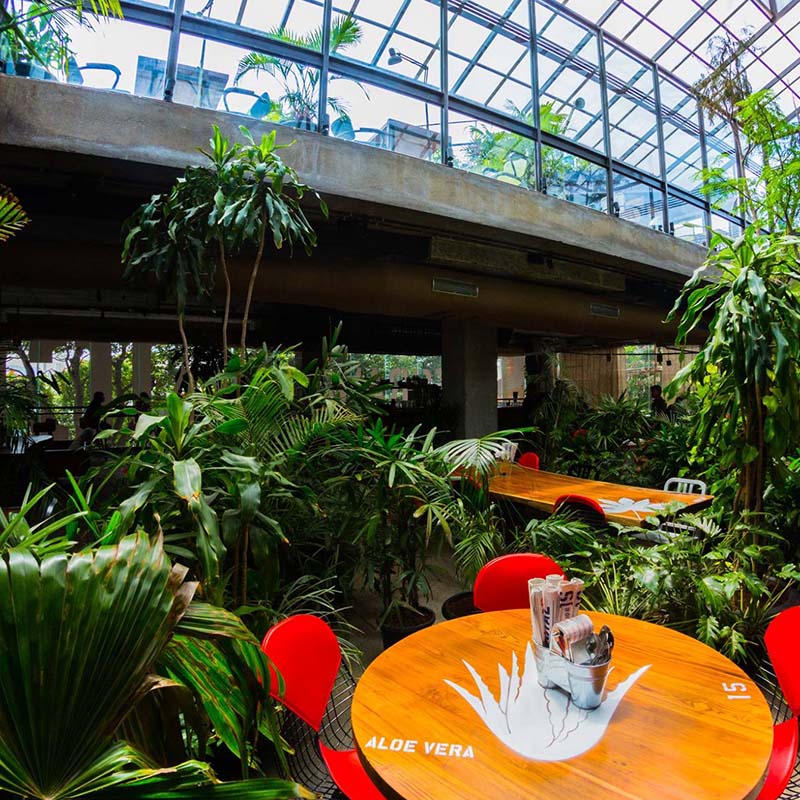 Koramangala SOCIAL is a stab at sustainable architecture. From the floor you walk on, to the high greenhouse styled glass ceiling, the space echoes the outdoors and the green earth. In the truest of senses, Koramangala SOCIAL’s unique interiors give you a feeling that nature has overrun the space.