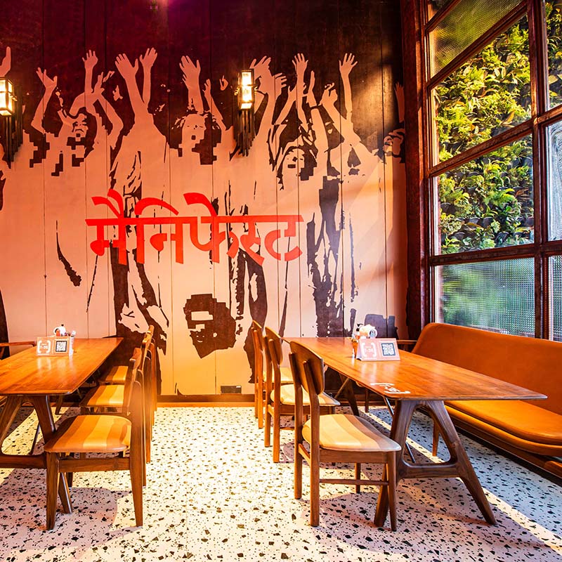 Koregaon Park SOCIAL captures the essence of Pune’s vibrant neighborhood, from its green lanes lined with banyan trees to the iconic Shrewsbury biscuits and the Osho ashram. The place is decked out with cool tapestries and meditative art, all in earthy tones. With uplifting vibes and the soothing scent of incense, it’s got a chill, inviting atmosphere perfect for some introspection and relaxation.